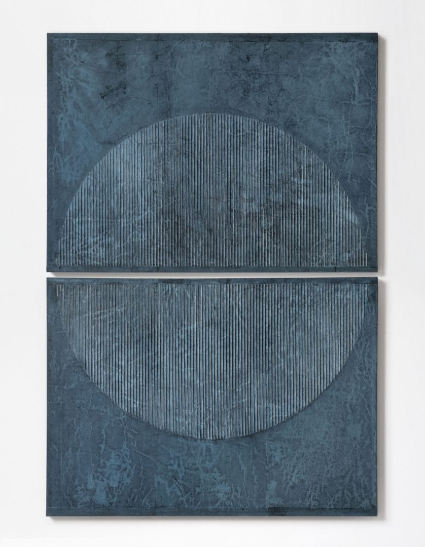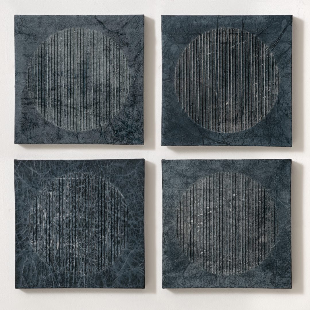L’alfabeto asemico si espande anche all’oggetto libro con ALPHABET, libro d’artista commissionato dall’Archivio di Comunicazione Visiva e Libri d'Artista di San Cataldo (CL). In TR-AMANDO, il tempo si fa metafora e gioco attraverso una trama lacerata e interrotta. In RITAGLIARE LUNGO LA LINEA TRATTEGGIATA, sperimenta la carta intelata cucita con corda tinta a mano, intrecciando elementi geometrici chiave nella composizione. Con PRE-HISTORIC, grazie al frottage su carta e cellotex, rintraccia nuovi segni asemici in dialogo con le tracce della Preistoria: segni che, come la parte sommersa di un iceberg, rimandano a una lingua primordiale. In MOSAIC, realizzato con tessere di frottage, riafferma i concetti di insieme e di tempo, contemplando la possibilità di un ordine imperfetto. In L'OMBRA DEL CERCHIO fa uso di una geometria dialogante che ha perimetri, misure e spazi ma che non si impone rigidamente, piuttosto si articola ed è predisposta al variare, inspira ed espira e risponde al vibrare dell’aria e della luce.
