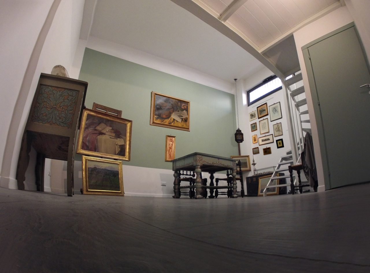 Arredano gli spazi oggetti e mobili provenienti dallo studio dell'artista, tra cui una serie di mobili decorati da Prencipe negli anni Venti in collaborazione con Ilario Ciaurro.